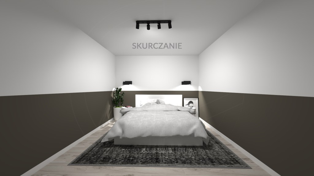 Ciemne ściany z jasnym sufitem tworzą iluzję niższych ścian i wyższego sufitu. Taki układ może być korzystny w dużych, wysokich pomieszczeniach, które mogą wydawać się zbyt puste i nieprzytulne.