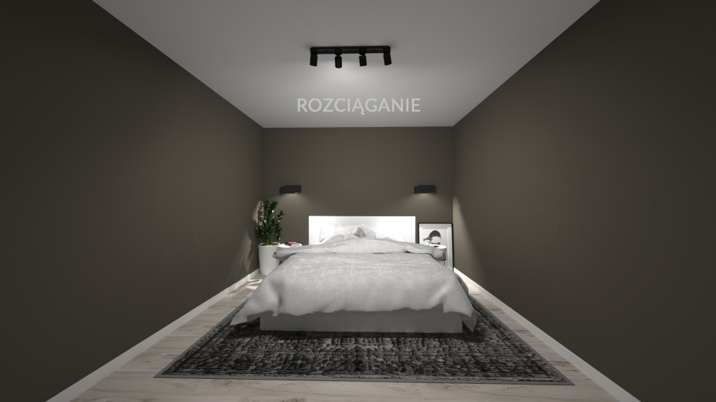 Ciemne kolory na suficie powodują, że sufit wydaje się niższy, co może wprowadzać bardziej przytulne i intymne odczucie. Jest to efekt pożądany w wysokich pomieszczeniach, gdzie chcemy stworzyć bardziej zamkniętą i komfortową atmosferę. Aby efekt ciemnego sufitu nie był przytłaczający, można spróbować pozostawić około 15-30 cm sufitu od krawędzi ścian w jasnym kolorze i pomalować tylko „wewnętrzną” część w nieco ciemniejszym odcieniu. Taki obramowany efekt może sprawić, że środkowa część sufitu wyda się wyższa.