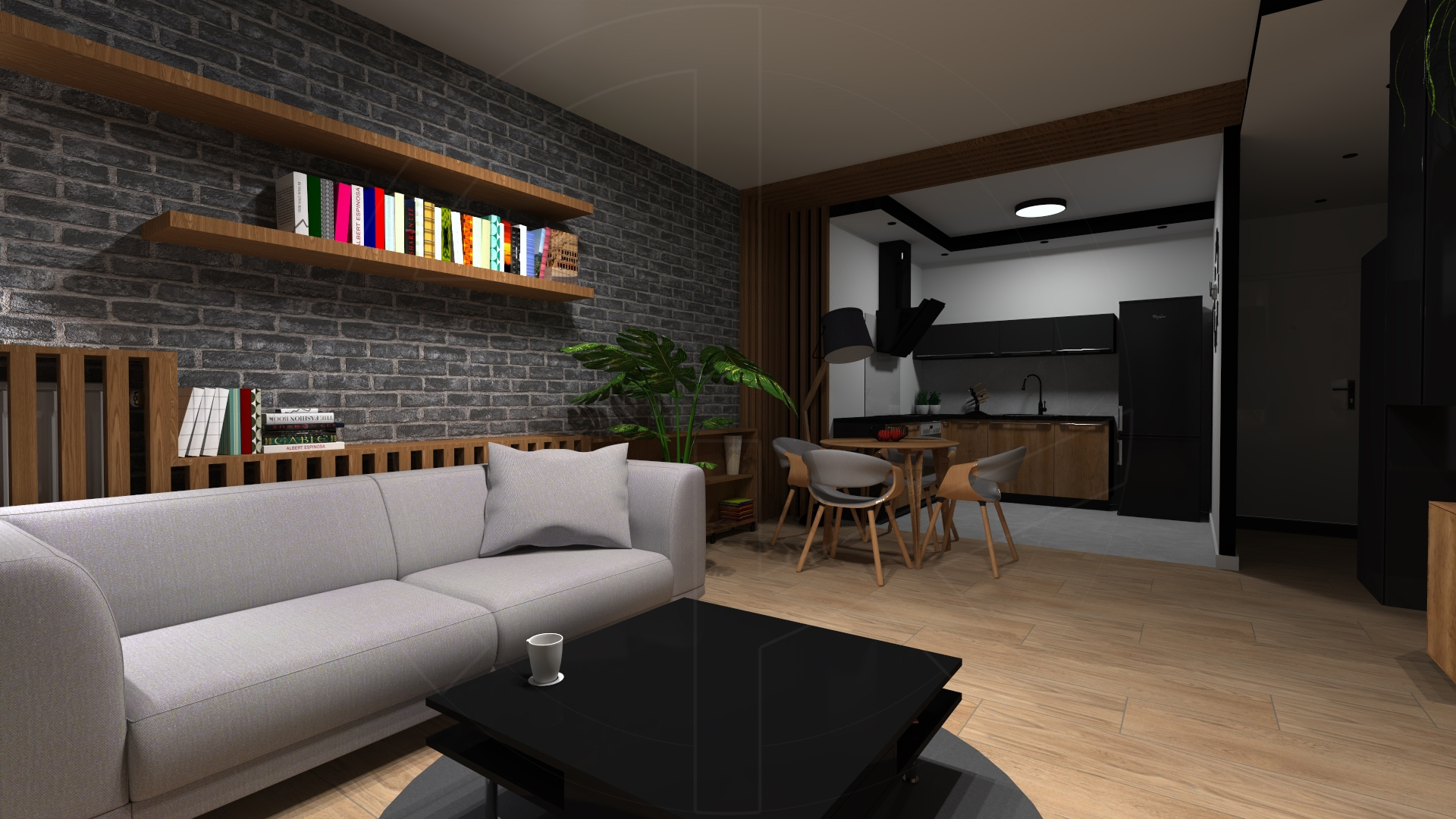 Projekt otwartej kuchni i salonu / pokoju dziennego w Matysówce/ k. Rzeszowa (ca. 43 sqm)