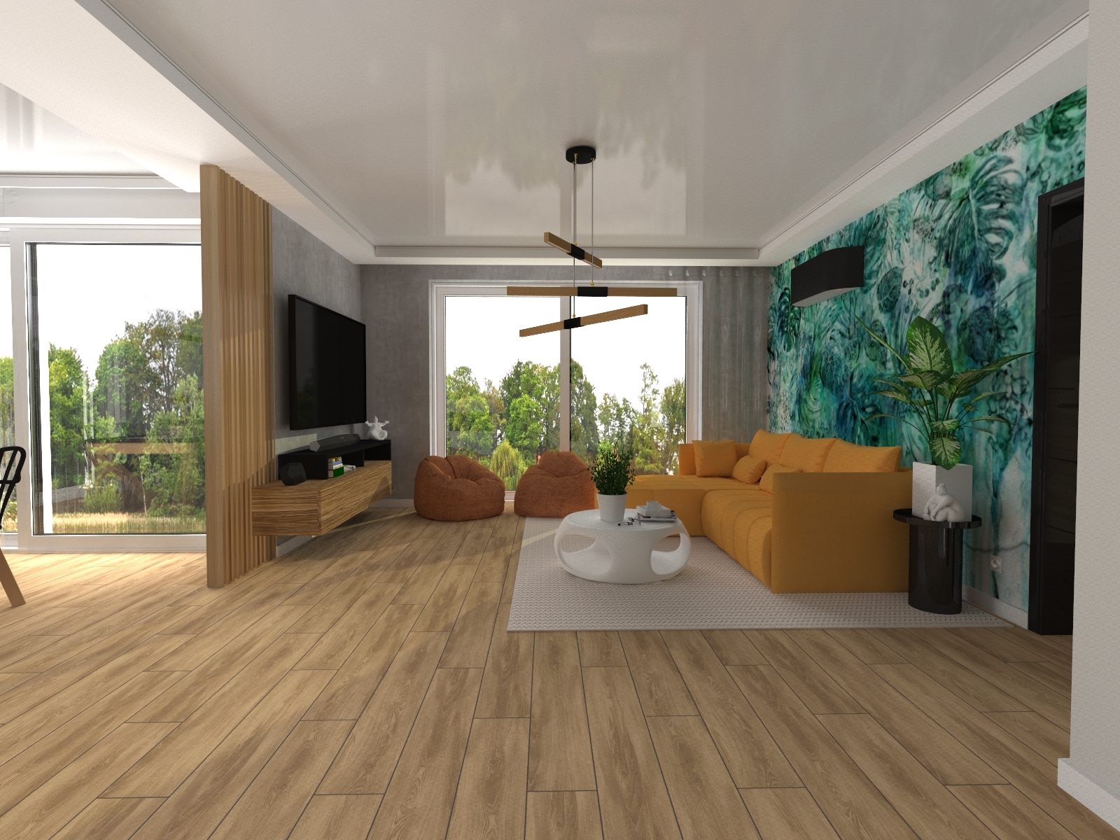 Projekt salonu / pokoju dziennego / pokoju gier w Łańcucie/ k. Rzeszowa(ca. 45 sqm)
