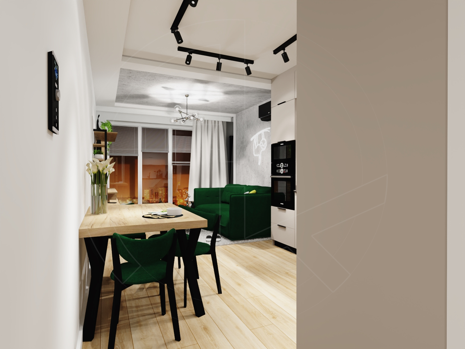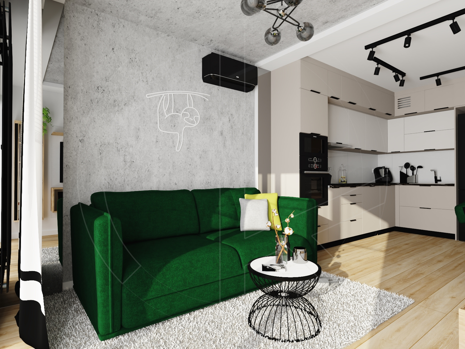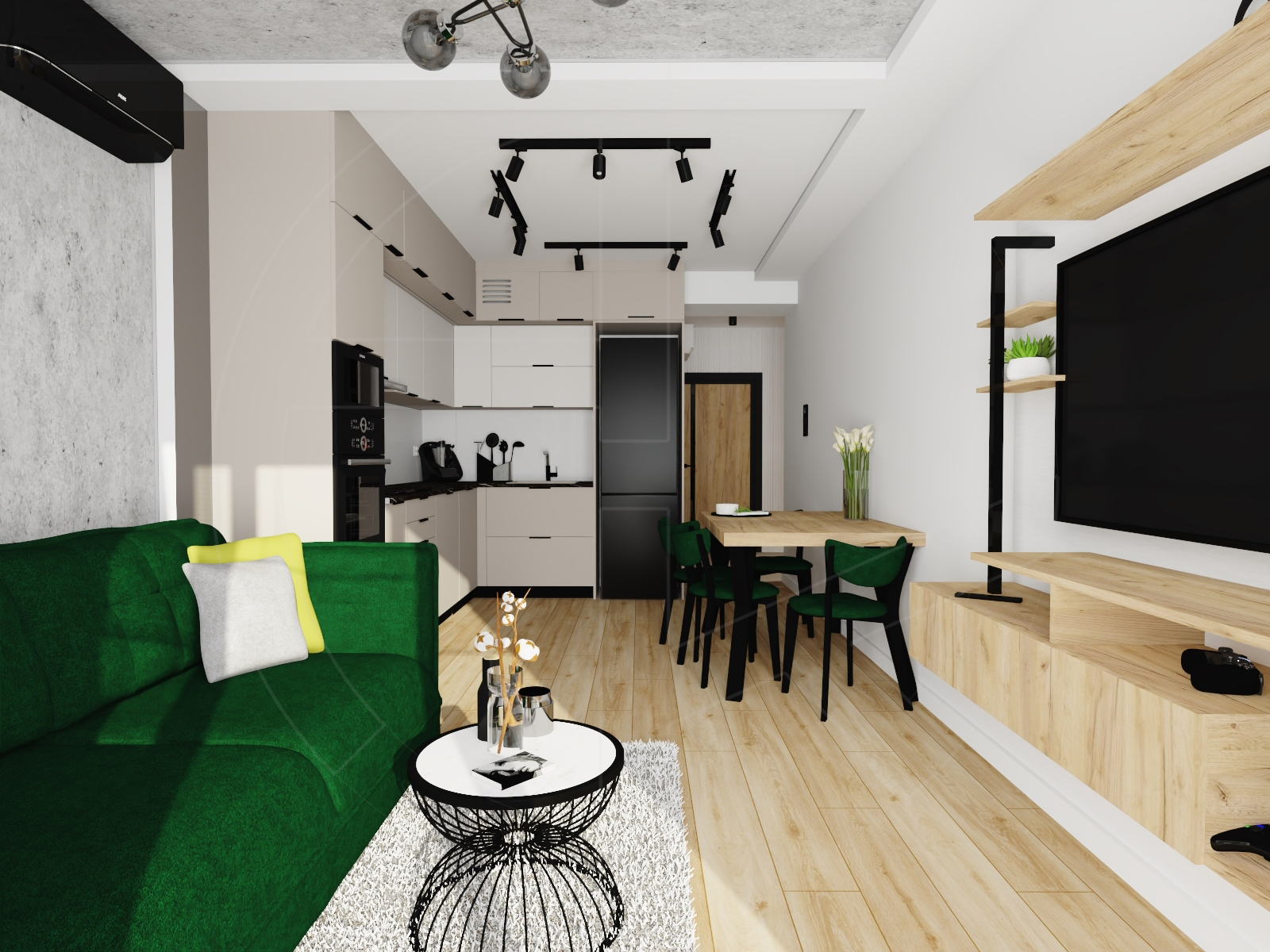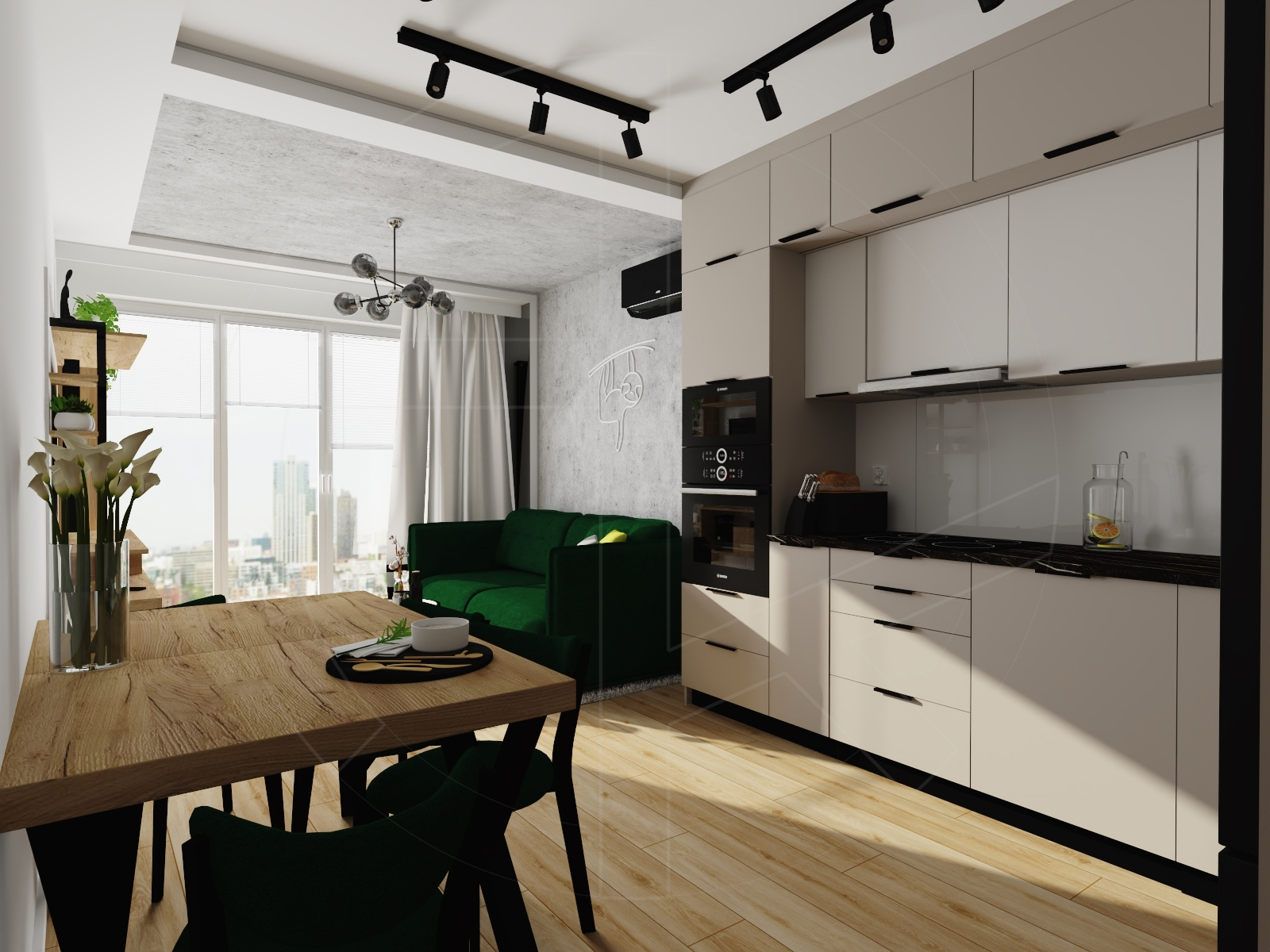 Living room & kitchen – salon z aneksem kuchennym (c.a 20 sqm):