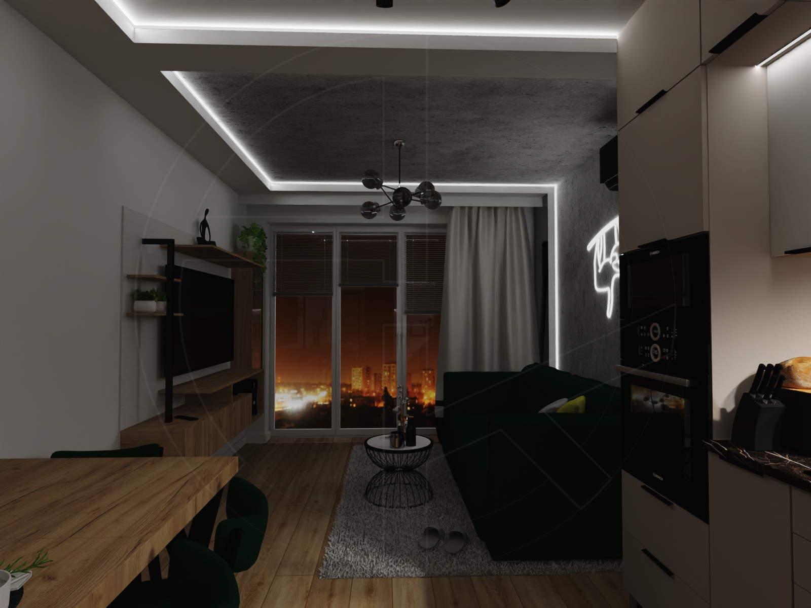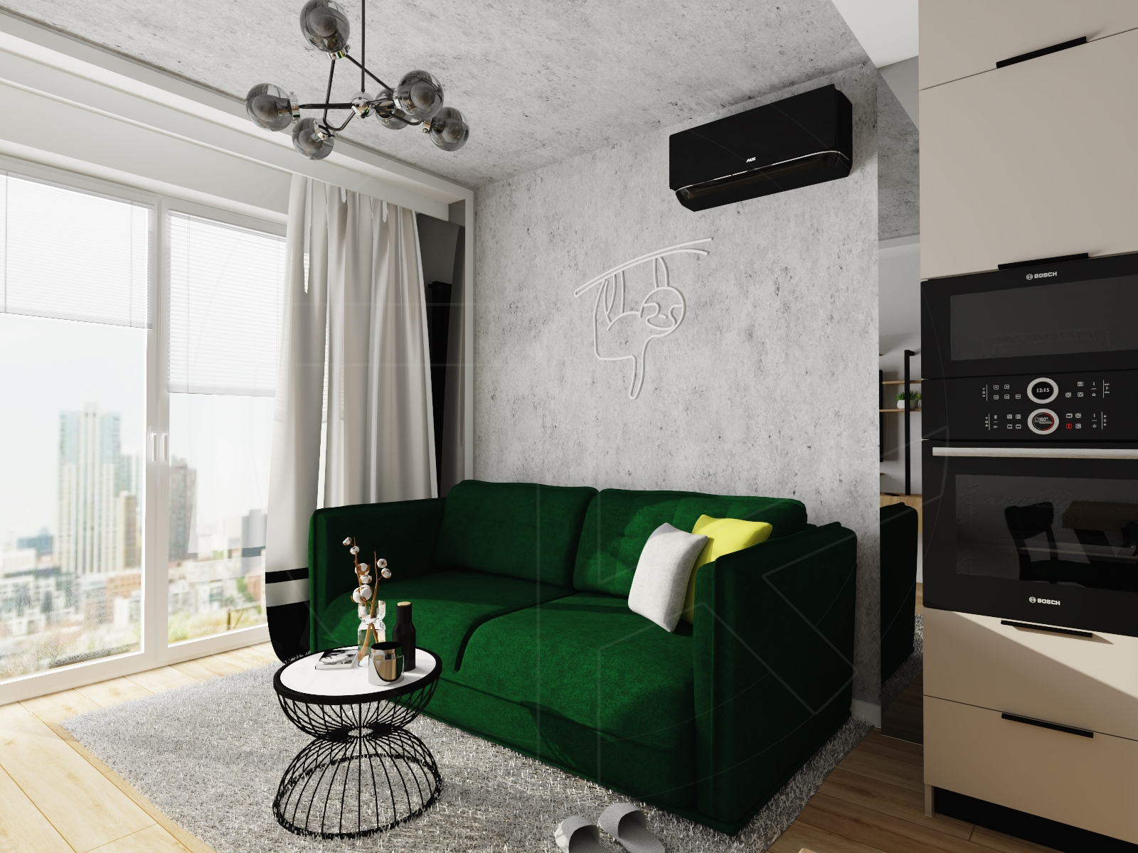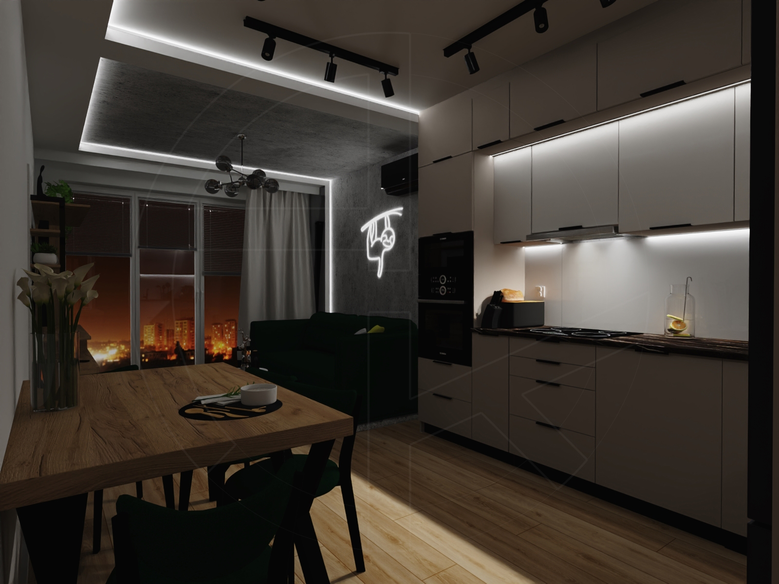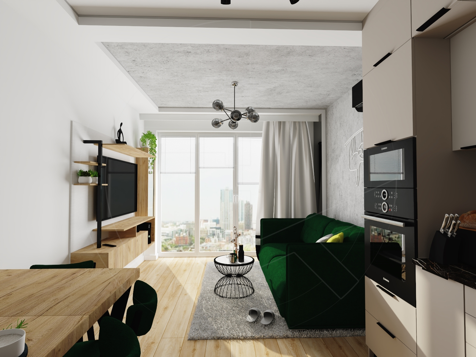 Living room & kitchen – salon z aneksem kuchennym (c.a 20 sqm):