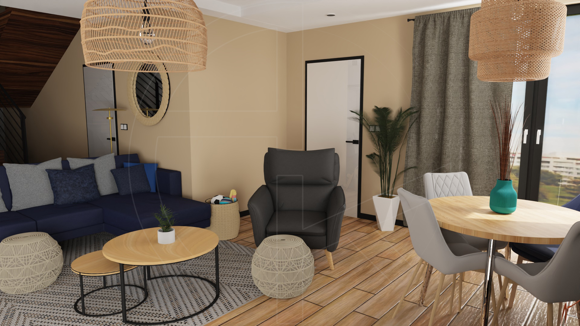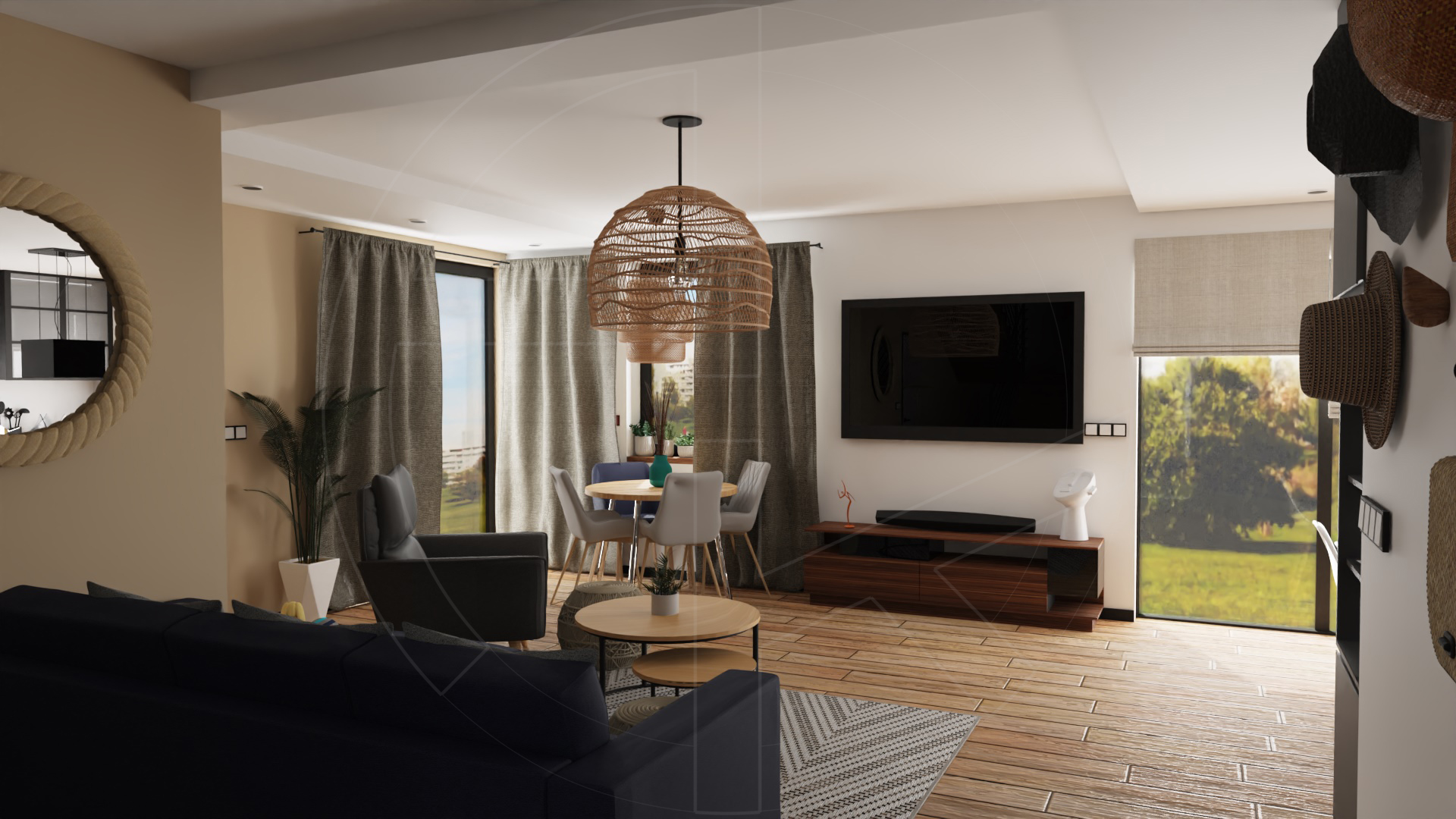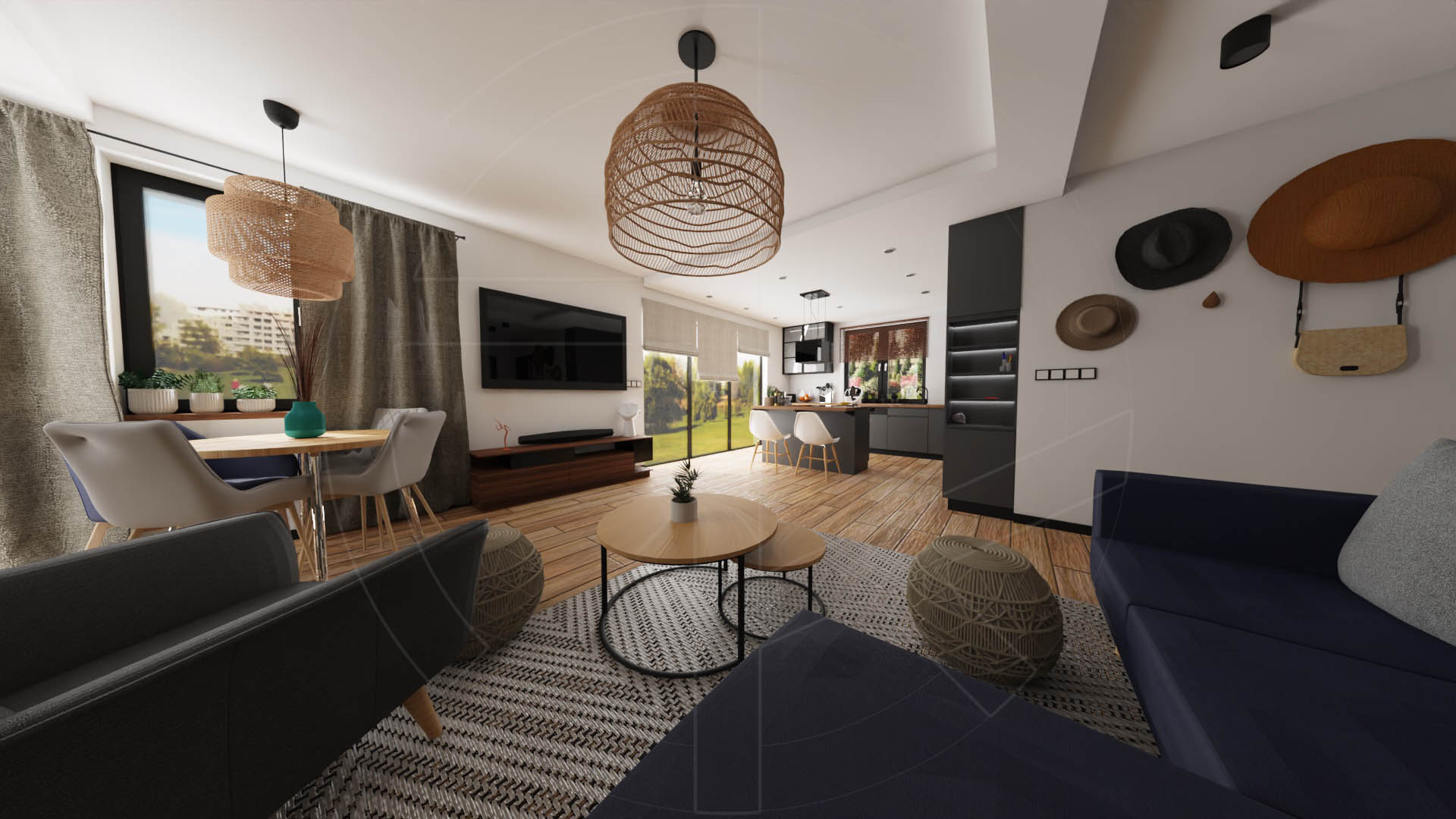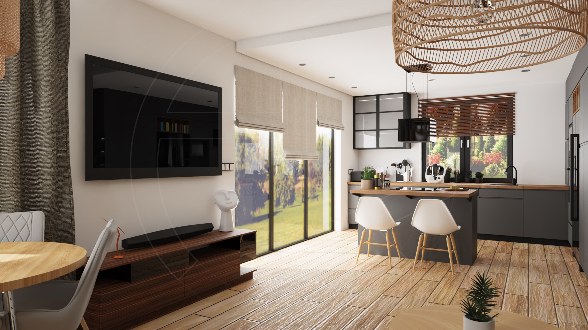 Living room & kitchen – salon z otwartą kuchnią (c.a 43 sqm):